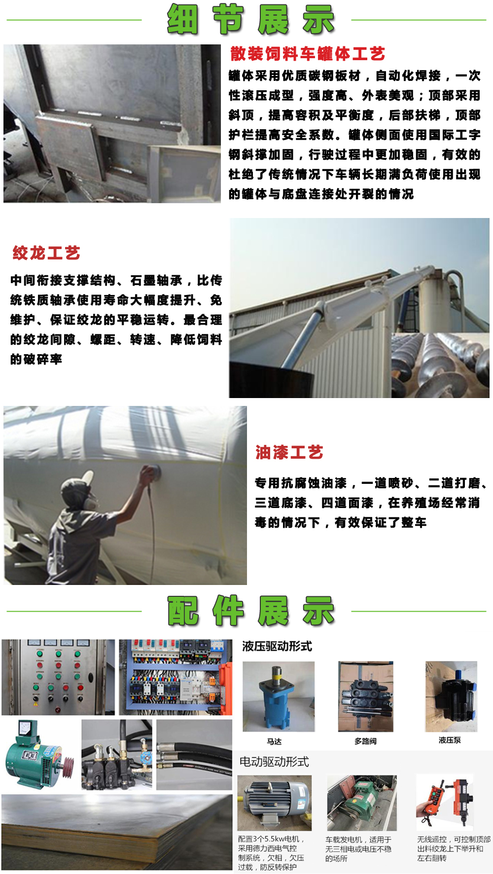 24方(12噸)東風天錦電動散裝飼料運輸車,康明斯6缸180馬力發動機,法士特8檔變速箱,5000mm軸距,10.00R20鋼絲胎,電動門窗,中控門鎖,空調,ABS,方向助力,汽車記錄儀,斷氣剎;上裝罐體容積約22立方,罐體采用4mm優質鈦鋼板制作,罐體內分為叁個倉,可****各分倉卸料順序和速度,整車3條蛟龍(底部水平絞龍、尾部垂直絞龍、頂部卸料絞龍),由3個5.5kw 380v電機帶動各絞龍工作,頂部絞龍液壓**舉升,可左右旋轉180°!