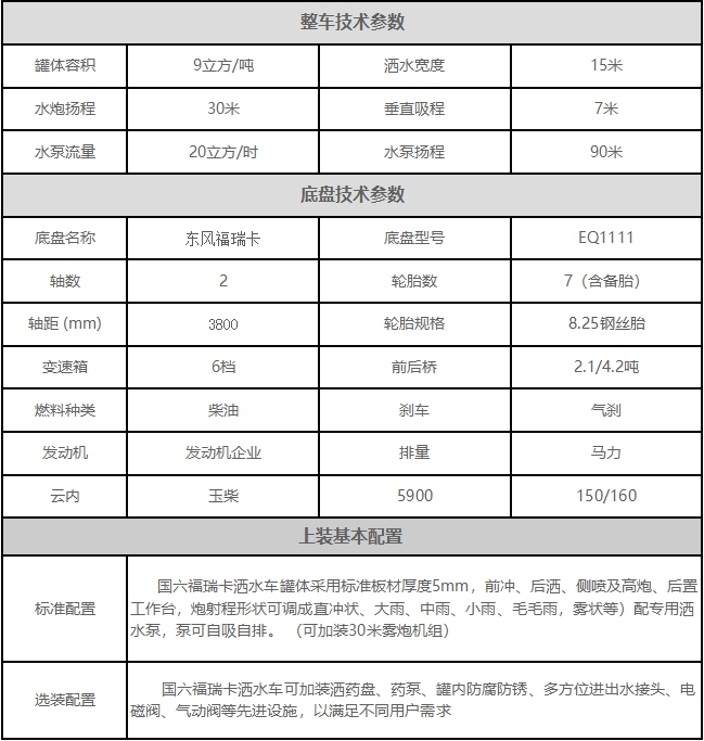 灑水車又稱為噴灑車、多功能灑水車、園林綠化灑水車、水罐車、運水車。 灑水車適合于各種路面沖洗,樹木、綠化帶、草坪綠化,道路、廠礦企業施工建設,高空建筑沖洗。具有灑水、壓塵、高、低位噴灑,農藥噴灑、護欄沖洗等功能,還具有運水、排水,應急等功能。